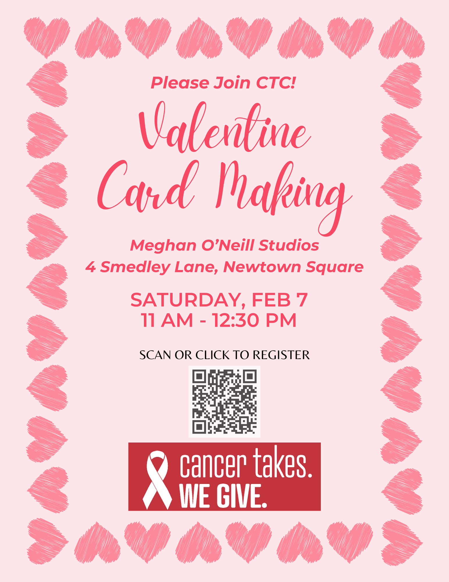 Join us on Saturday, Feburary 7th for a Valentine Card Making workshop at Meghan O’Neill Studios in Newtown Square. We will come together to design handmade Valentine’s cards perfect for spreading the love! Space is limited and registration is required so save your spot today!